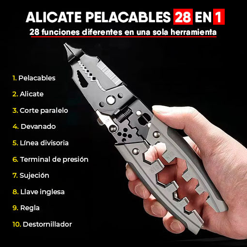 ¡Sí, lo has leído bien, 28! Desde pelar cables hasta cortar terminales, esta herramienta será tu nueva mejor amiga en cualquier trabajo.