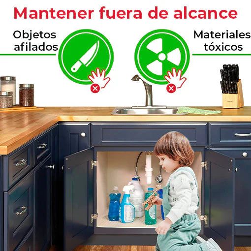 Protege a tus pequeños de posibles accidentes en tu hogar mientras exploran, evitando que abran los cajones en la cocina, estudios o habitaciones. Con los innovadores CIERRES MAGNÉTICOS, podrás bloquear fácil y efectivamente los accesos y puertas de los cajones que no deberían tocar. Solo tú podrás abrirlos con una llave magnética especial.