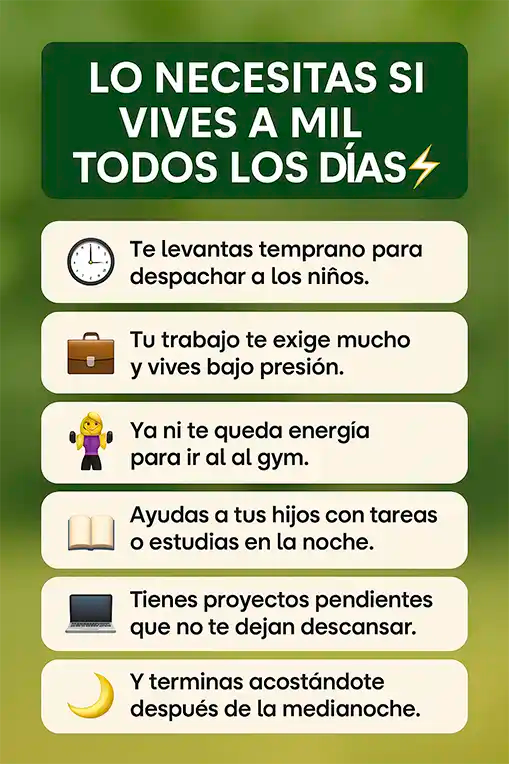 Desde la primera semana podrás notar mejoras en energía, enfoque y descanso.