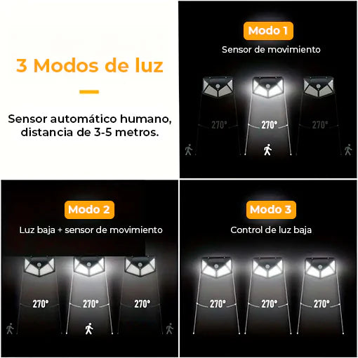 - ✅MODO SENSOR: La luz se enciende al percibir movimiento cercano en un ángulo de 270 grados.