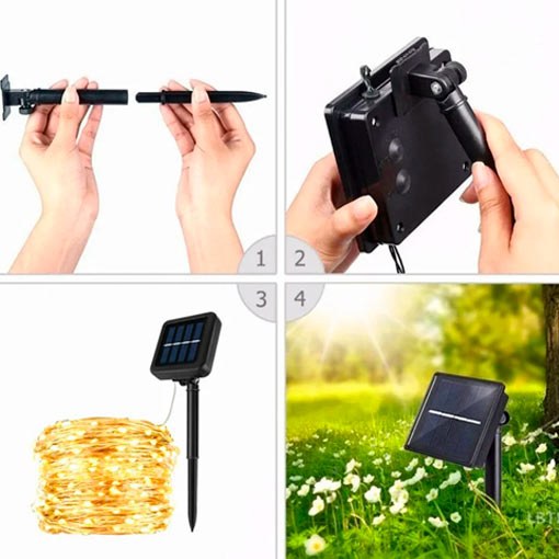 OLVÍDATE DE COMPRAR PILAS O GASTAR LUZ ENCHUFANDO LAS LUCES, CÁRGALAS DURANTE EL DÍA CON EL PANEL SOLAR Y ÚSALAS POR LA NOCHE.