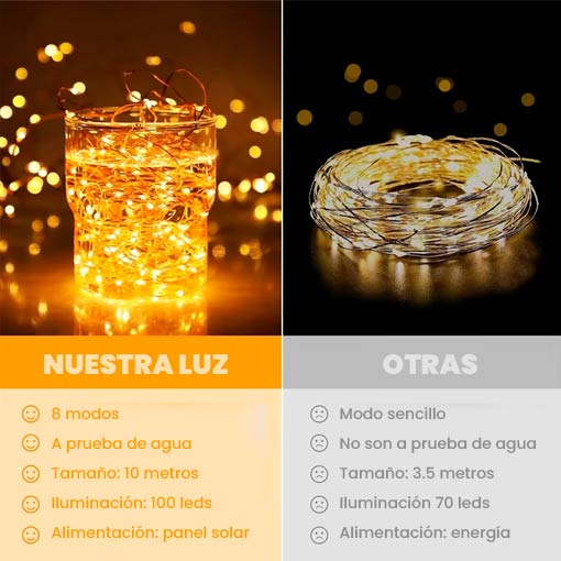 Unas luces navideñas solares de 10 metros de largo con 100 leds