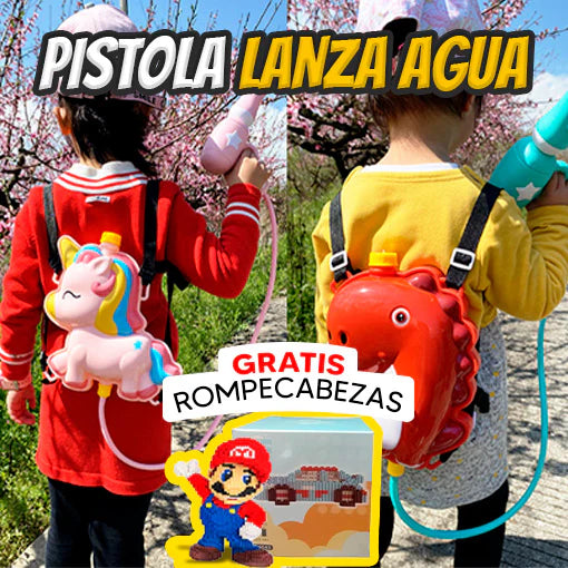 1 mochila con pistola de agua del diseño que escojas + 1 rompecabezas 3D de regalo (diseño a disposición de stock)