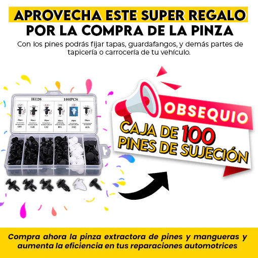 Pinza extractora de pines y mangueras + GRATIS 1 caja con 100 pines de sujeción