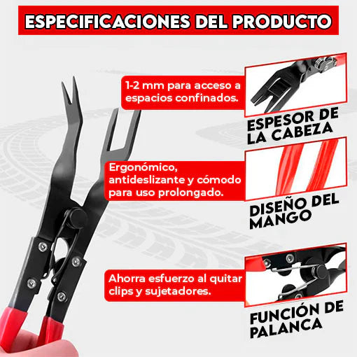 Puedes quitar grapas, pines, paneles de puertas y tableros sin dañar las piezas ni las superficies, con total control y precisión.