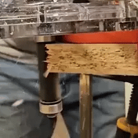 • Ajusta la broca enrutadora con corte al ras en la mesa enrutadora de modo que el cojinete se alinee con la guía y el borde de corte completamente la pieza de trabajo.