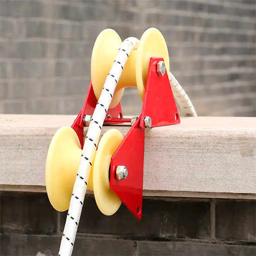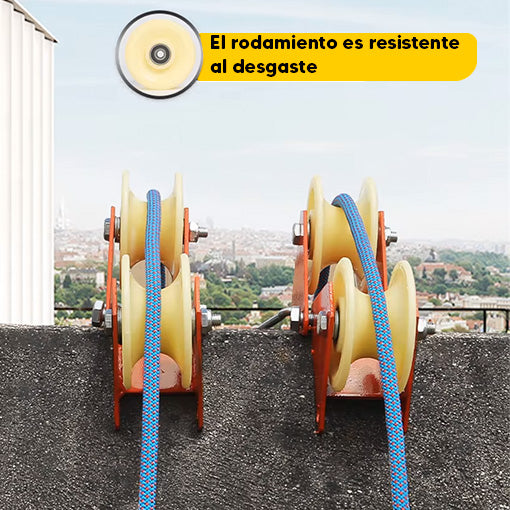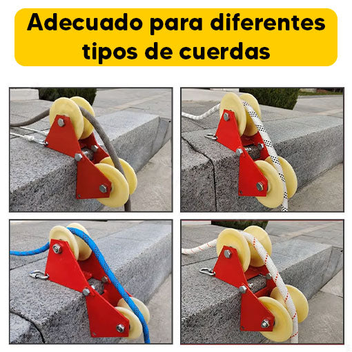Si estás trasladando material de un lugar a otro o estas haciendo un trabajo de cableado, puedes poner la polea sobre las esquinas de las paredes para evitar que las cuerdas y los cables se deterioren.